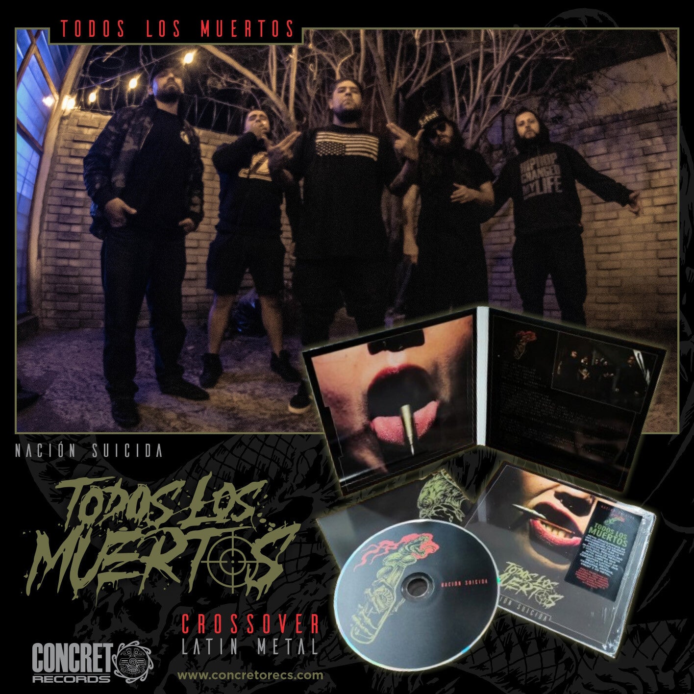 Primer trabajo discográfico de Todos Los Muertos, inspirado en los latidos de la resistencia, con furia y rechazo a toda injusticia para nuestros pueblos, desde un sonido que atraviesa el Hardcore, Nu metal, Rap y Punk, con la participación de Juan Brujo (Brujería), Jorge Kotardo y Patrón BSNC. Nación Suicida es una declaración abierta para tiempos de lucha.